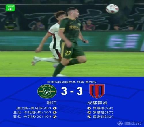 联赛争冠已经进入白热化,成都蓉城在本轮客战浙江上半场就取得了3-0领先,然而在随后的比赛中防守出现了问题,浙江外援卡列洛在伤停补时阶段完成绝平,成都蓉城就此让出了榜首的位置。