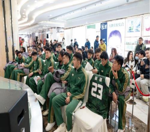 中午时分,活动现场便已热闹非凡。球迷们早早来到现场,或在球衣展示墙前驻足欣赏,或在出征助力签名墙上留下真挚祝福,用自己的方式为球队加油“打CALL”。大屏幕上的训练短片,记录着球队在休赛期从未松懈的努力。