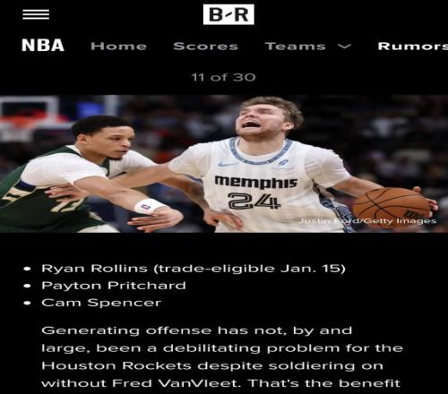 美国媒体《露天看台》还为火箭队列举了三个可以引进的控卫对象,因为范弗利特大概率要赛季报销了,第一个是雄鹿的罗林斯、第二个是凯尔特人的普理查德,第三位是灰熊队的卡姆-斯潘塞,如果能交易得到他们其中之一火箭的硬实力还能提升。