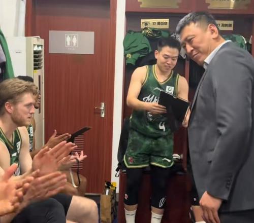 金链子则给了王世龙,还是郭昊文给他颁奖的,这就很有意思了。大家全部都上去呐喊支持,他们的团队性一直都非常好,也确实王世龙在攻守体系上的搭建并不差。