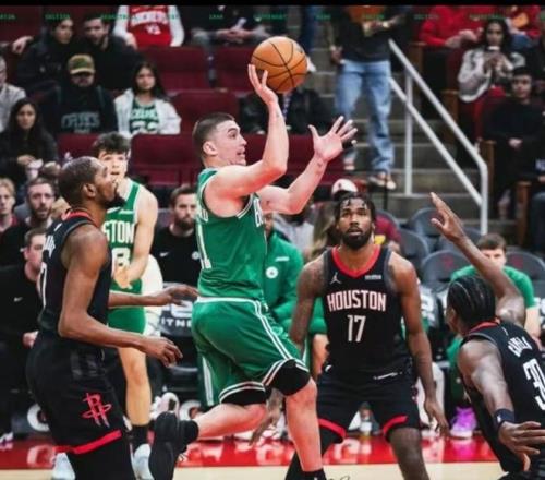 比赛伊始,双方迅速进入状态,展现出了季后赛级别的防守强度。上半场比赛,两队在攻防两端展开了激烈的拉锯战。火箭队的防守端侵略性十足,试图利用凯尔特人体能不佳的弱点通过反击得分,而凯尔特人则凭借出色的战术素养稳扎稳打。上半场结束时,火箭队以42-49暂时落后,分差控制在7分以内,比赛依然充满了悬念。