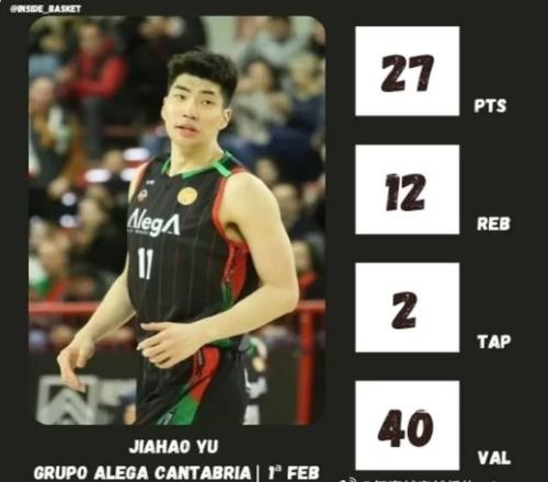 面对与Alimerka Oviedo Baloncesto的比赛,余嘉豪高效11中9展现出超强的内线统治力,投篮命中率高达81.8%,尤其是屡屡中投得分,还不断造犯规10罚9中,从而狂轰27分大幅提升自己的留洋单场最高分纪录。